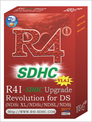 R4i-SDHC is SLOT-1 flash cards for NDS console series(support DSi). It is upgrade versions of R4 with multi-media features which can support SDHC and run most games and homebrews. It has widely been owned by many NDS player users.