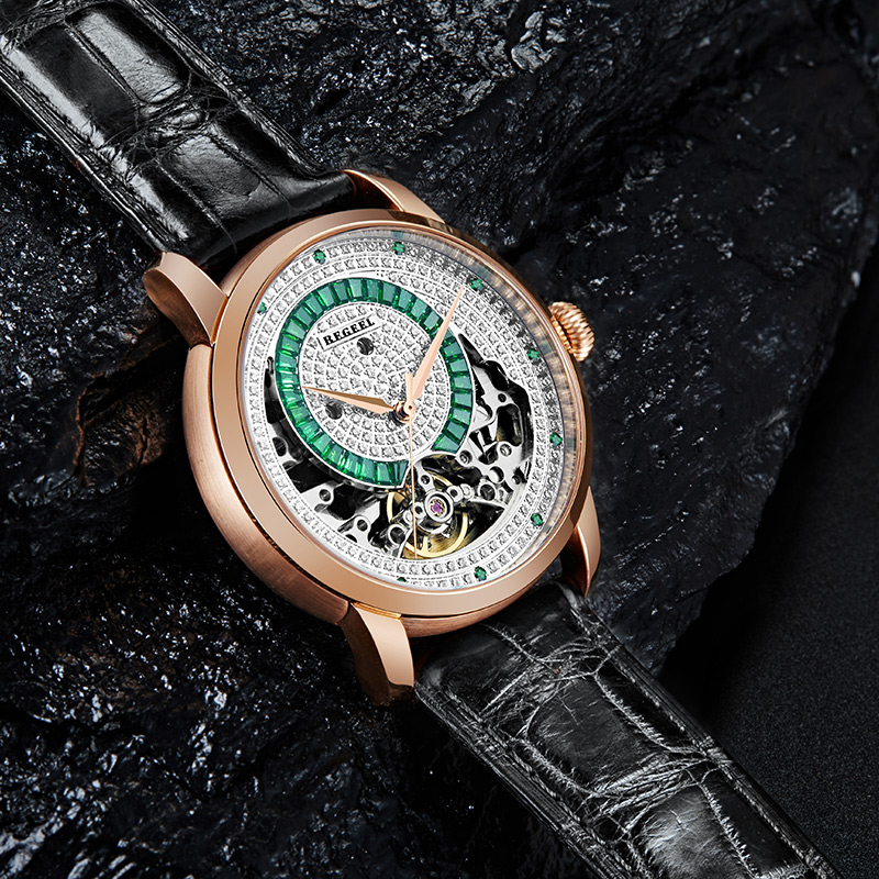 腕表設(shè)計靈感來源于,上海浦東世紀大道《東方之光》(日晷針)造型,日晷令人聯(lián)想到遙遠的歷史,旨在突出時間紀念的主題,設(shè)計師參考東方之光的造型,結(jié)合沙弗萊石等稀有原料,融合到腕表的表盤之中,完成了賓爵沙弗萊石機械腕表的設(shè)計。