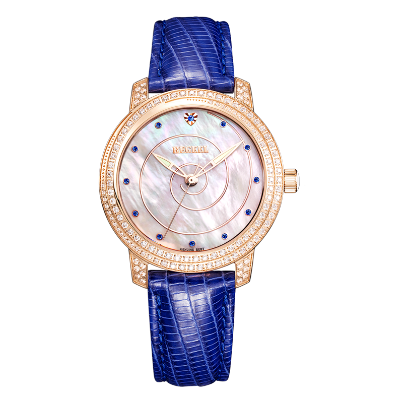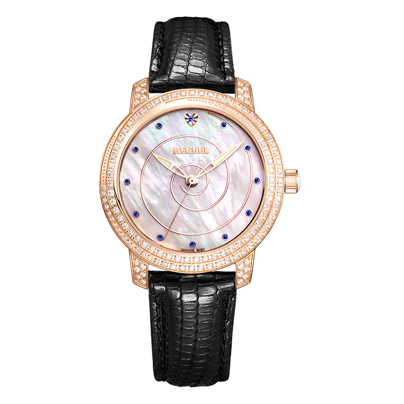 字面:貝殼面12粒真紅寶石刻度/滿天星玫瑰金面鑲329粒水鉆