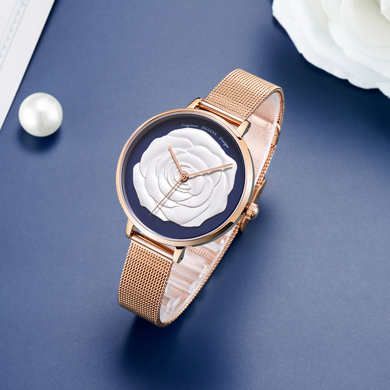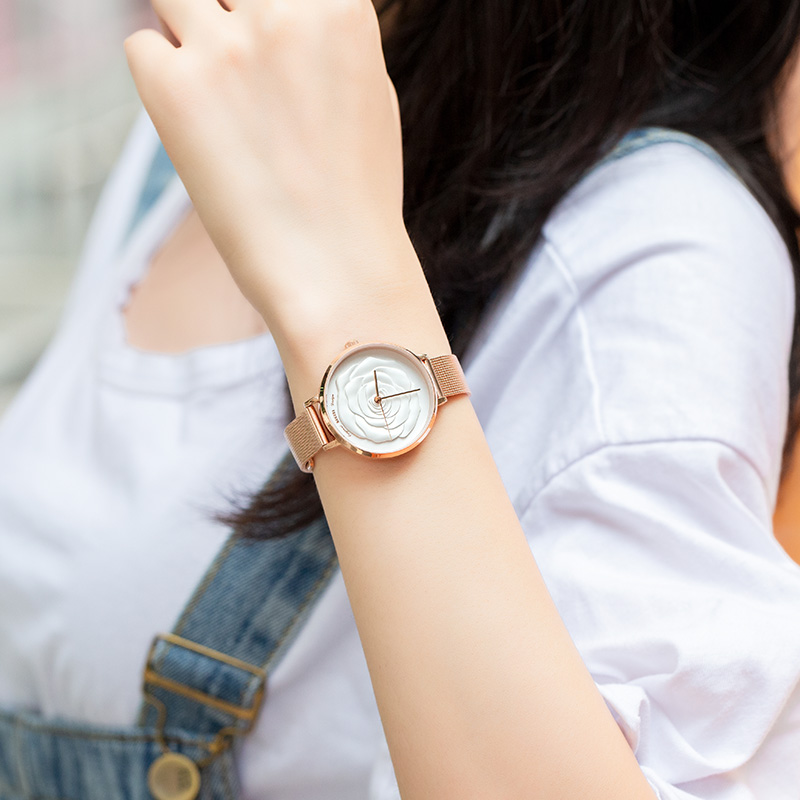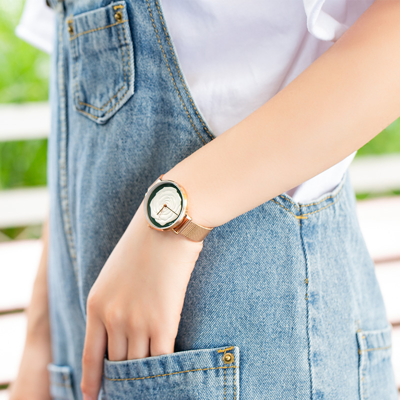來源于大自然的設計靈感,從玫瑰中汲取靈感,每一片花瓣都是依據玫瑰盛開時的弧度設計,有些女性仿佛玫瑰,需披荊斬棘得以絢麗綻放。延續經典玫瑰的美,打造腕上玫瑰園,纖薄表身,薄而輕美,玫瑰在表盤上傲然盛開,手投足間盡顯東方女性的知性美。