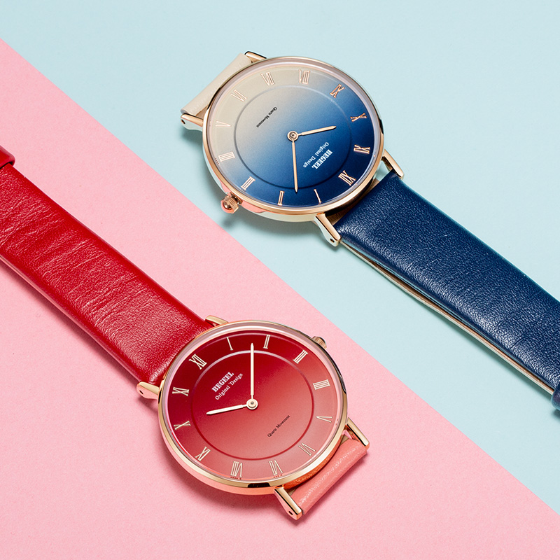 海間藍款:靈感源自蔚藍海岸與白色沙灘,漸隱漸顯的色彩迷幻人眼,仿佛是從清澈的海面到漆黑深海,醒目而寂靜,底色爆發(fā)出強大的活力。花間紅款:提取沙漠奇觀的紅色,熱烈的紅為腕間增添了一抹明亮,更為生活注入了一份激情。