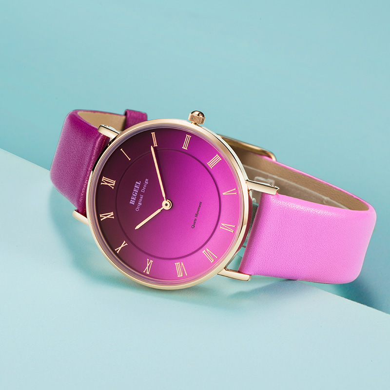 草間綠款:靈感來源于絢麗多彩極光,采用了漸變設計,呈現(xiàn)了取自自然光譜中的一段顏色變化,別樣的工藝美感,流光溢彩。漸情間紫款:以傍晚微暖的晚霞色為靈感,當浪漫的粉與夢幻的紫相結合,彰顯女性的柔美氣質,將美麗的晚霞呈現(xiàn)在腕表之上。