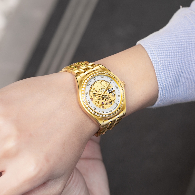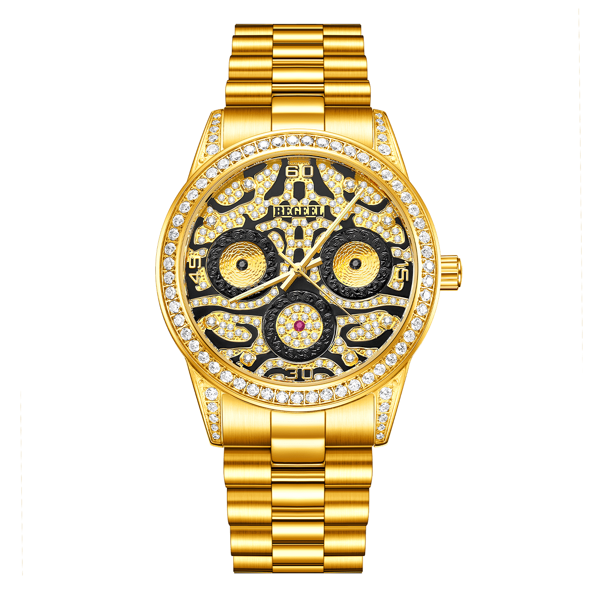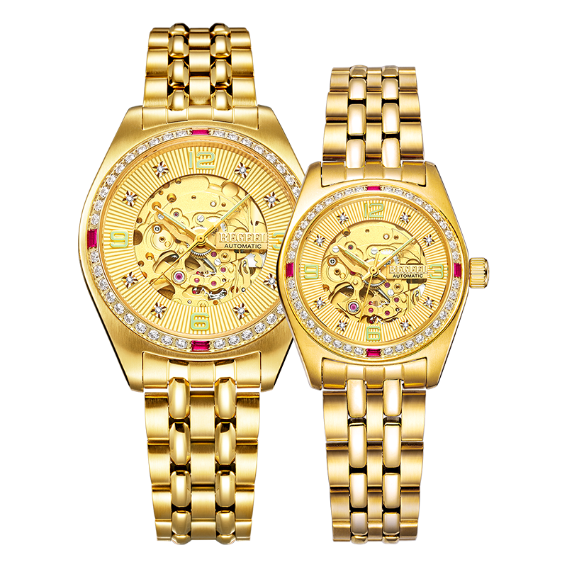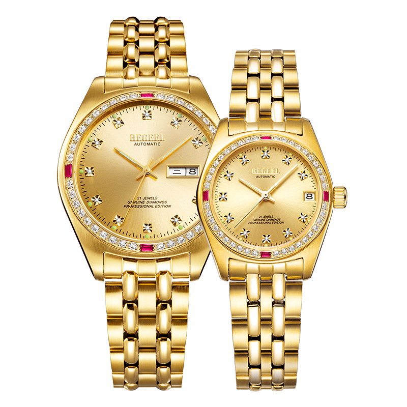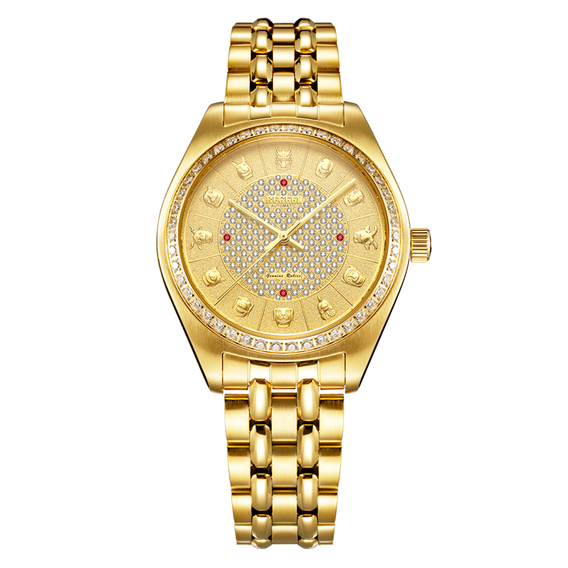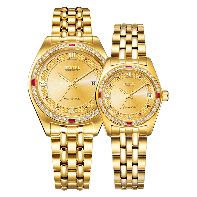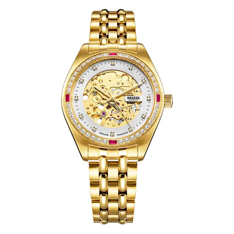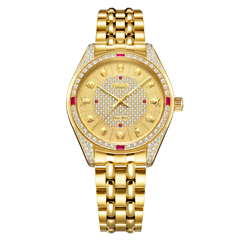 表殼:白鉆圈-316L精鋼電鍍金,紅鉆圈-316L精鋼電鍍金,鑲40顆晶鉆,4顆紅方晶鉆