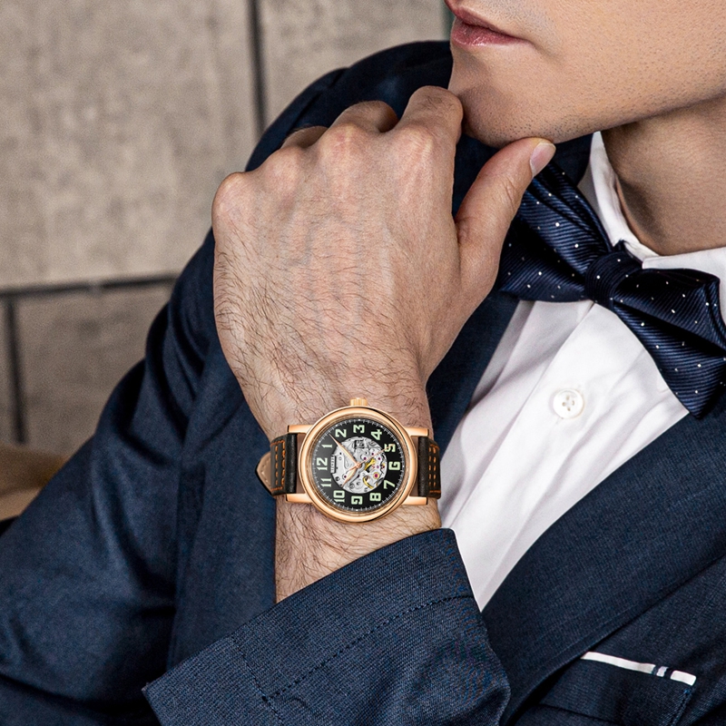 設計靈感源自航母指揮官——LSO。他負責決定飛機每次起飛和著陸的時間,并引導其在航母上平穩著陸。腕表集匠心鏤空外形和實用功能于一體,背透底蓋之下的個性擺錘設計是對志存高遠的優異飛行員的致敬。每次查看時間,都讓人擁有翱翔天際的感受。