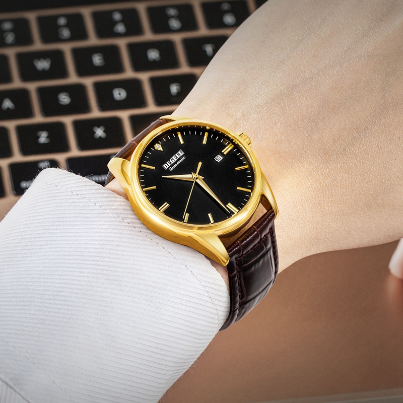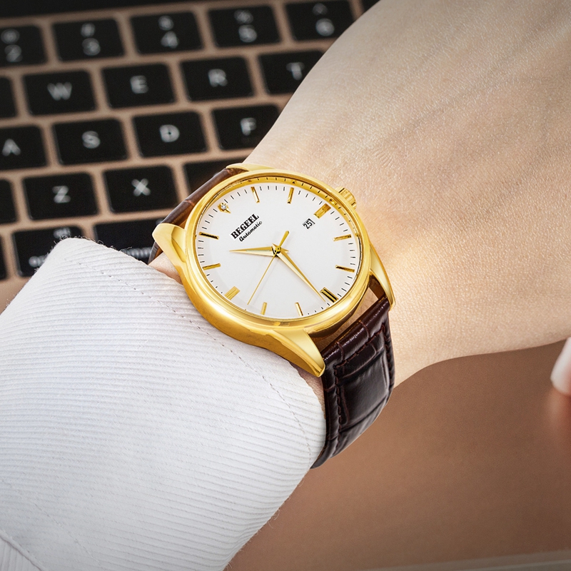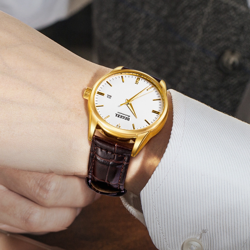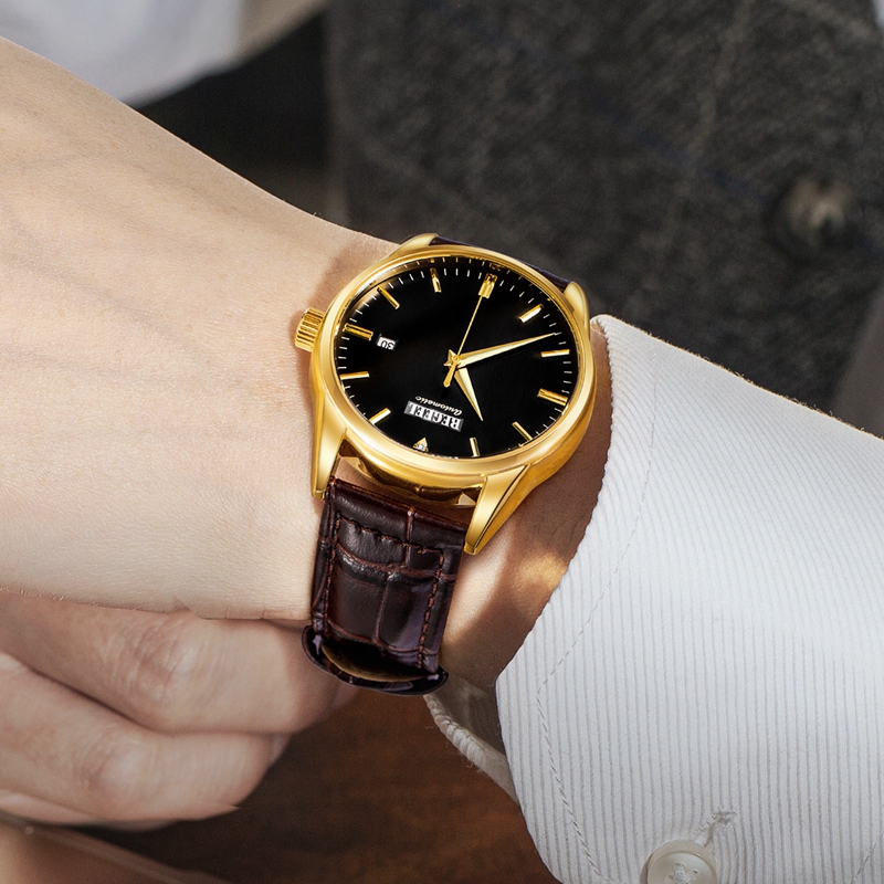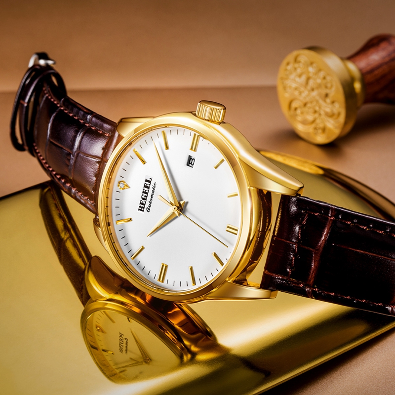 以時光中灑脫俊逸的行者為主要設計靈感,整體設計簡潔灑脫,不乏紳士風度。奢華金色搭配牛皮表帶,飾以質感磨砂紋表盤,于男士耀目的氣質中增添一抹銳氣與沉穩,傳遞出堅毅果敢的時光魅力。