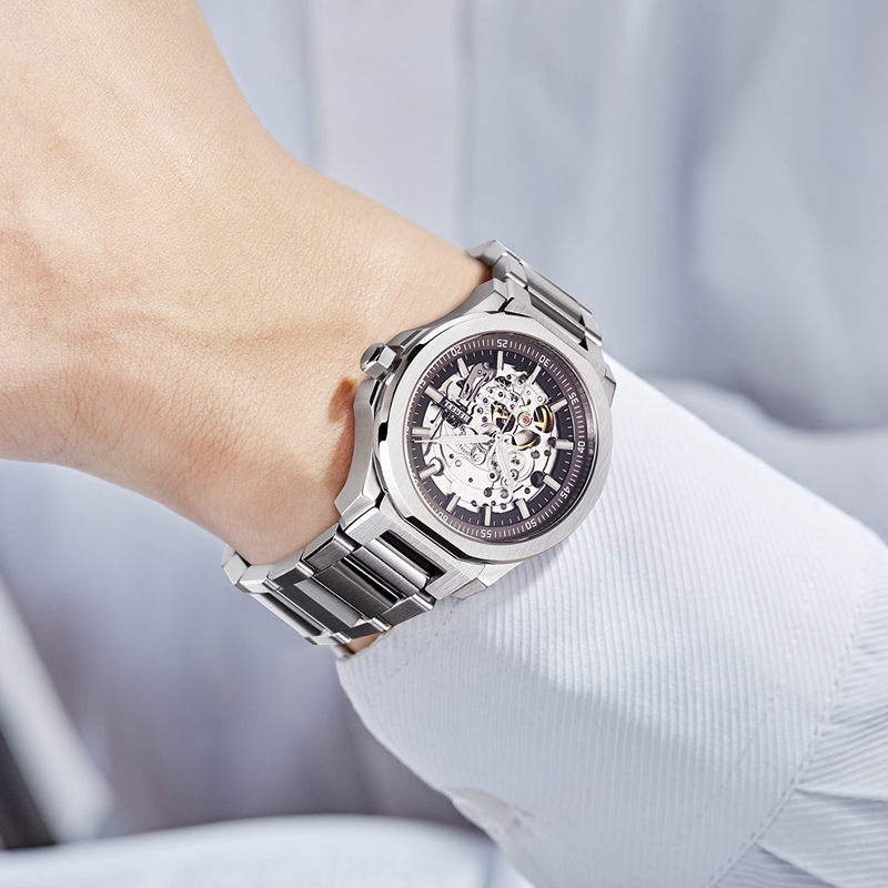 作為向航天先鋒與浩瀚蒼穹的崇高致敬,自由騎士全自動鏤空機械表有著與生俱來的尊貴血統,硬核精鋼表體與雙色立體鏤空表盤再現了飛行員征服藍天的傲人英姿,它將陪伴更多勇者,在廣袤天地展開冒險征程。