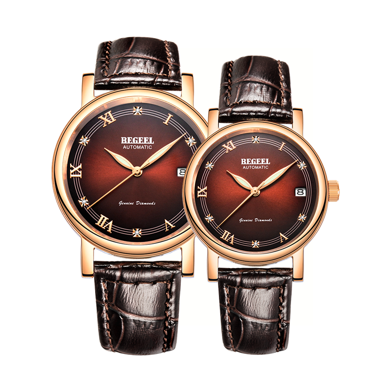 字面:咖色豹眼面,羅馬刻度, 鑲6顆天然真鉆,絲印Logo,強夜光針,單日歷顯示