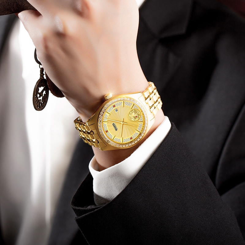 表殼:白圈口:316L精鋼電鍍真金,圈口鑲嵌46晶鉆