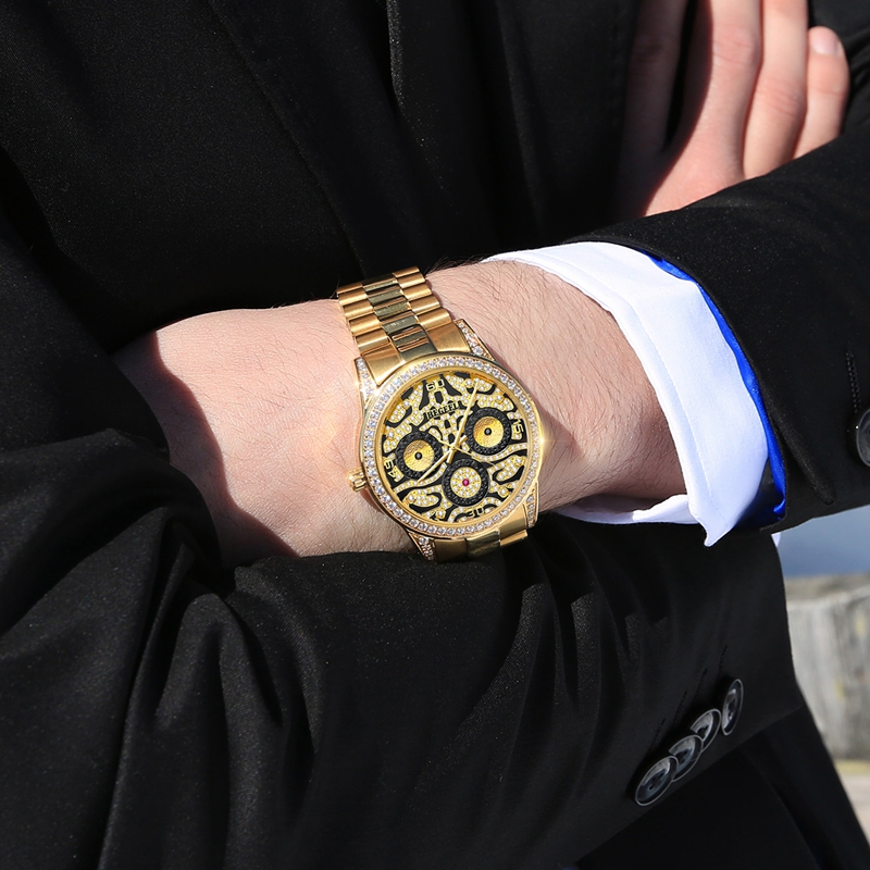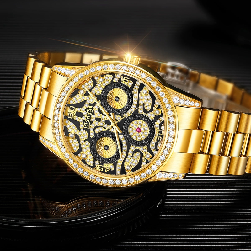 表殼:316L精鋼+電鍍真金 (圈口鑲55水晶鉆,耳位鑲20顆晶鉆)