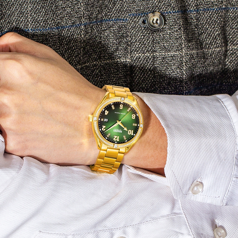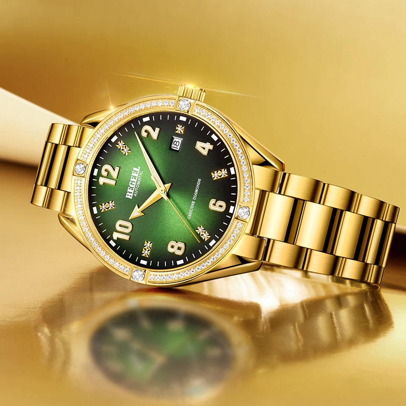 表殼:316L精鋼,電鍍真金,圈口鑲約80顆晶鉆