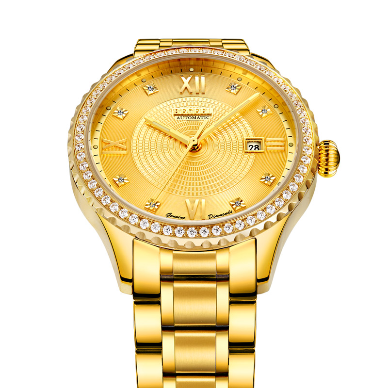 表面:梯方紋路+CD紋+8顆真鉆,3/6/9/12點位真訂+12個夜光點